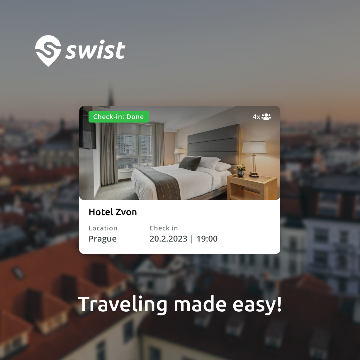 Check-in bez čekání či opisování osobních údajů. Swist převezme administrativní povinnosti cestovatele i ubytovatele, abyste se nemuseli opravdu o nic starat. Evidenci, hlášení a úřední písemnosti nechte na nás.